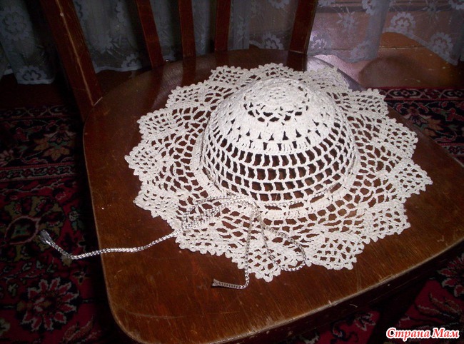 это моя первая шляпка... проблемы возникли при крахмалении: зафиксировать форму удалось с третьей попытки желатином... вязала из льна, наверное надо было в поля леску вставить, теперь уже поздно... надеюсь, свекровь оценит мои старания