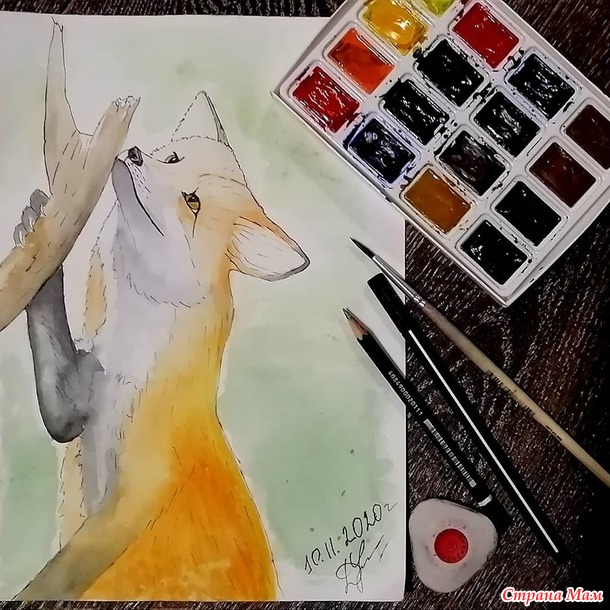 Что-то смотрела я на краски, на лисичку ... и снова на краски. И боялась все впечатление от лисички испортить.
