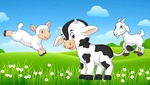 В один прекрасный день, ни у кого не спросив разрешения, удрали козлёнок, ягнёнок и телёнок из стада и пошли искать то место, куда солнышко на ночлег садится.