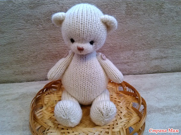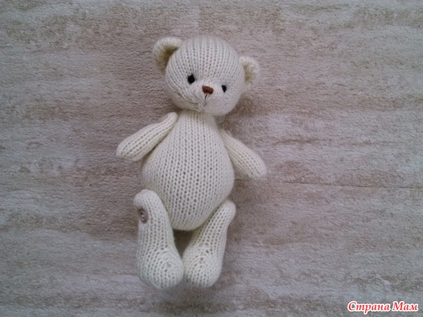 Мишка связан из 100% шерсти, спицы, рост 17 см. Впервые набивала овечьей шерстью. Мне очень понравилось, шерсть ложится как надо, как пластилин. Ручки , ножки двигаются,пуговичное крепление, глазки,носик вышиты. Мишка связан пр МК Евгении Елизаровой. Читать полностью