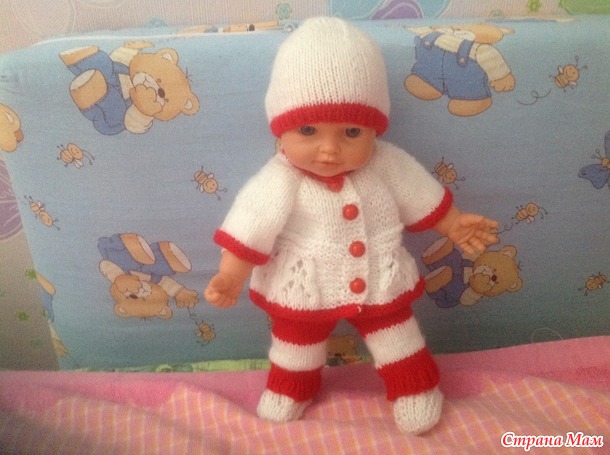 Пряжа Детская Новинка от Пехорки, спицы троечки и любимый пупс младшенькой в роли подопытной куклы.