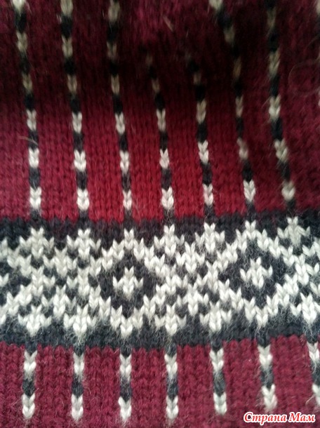 Описания нет. Это плод моей фантазии. Нашла в интернете подходящий жаккард, срисовала себе, дополнила полосочками незамысловатого жаккардового узора со сменой цвета.