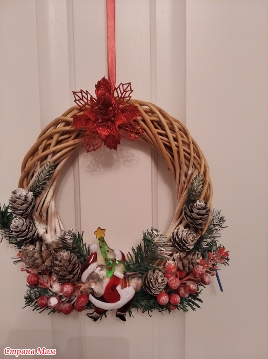 Первый венок из готовых основы и декора плюс шишки.