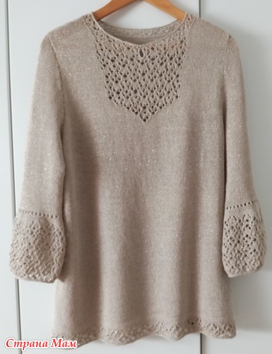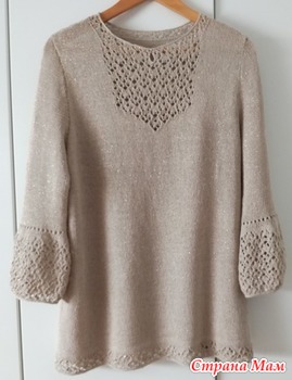 Я вязала из прибалтийского бобинного льна сиулас 450 м на 100г с добавлением люрекса. Расход 285 грамм льна и грамм 40 люрекса 3600м/100г. Спицы 2,75 и 2,5.На лето очень хорошо.