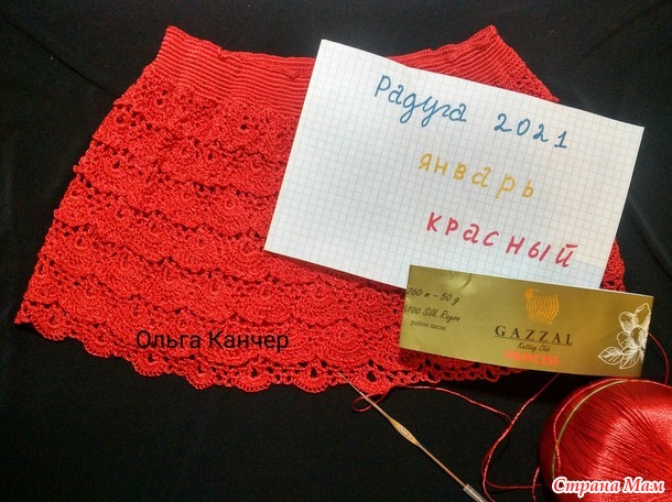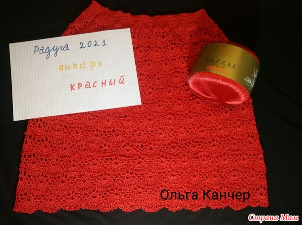 Здравствуйте, дорогие рукодельницы. Представляю вашему вниманию мой первый отчет в игре "Радуга"2021. Январь. Цвет красный.Первой работой в январе я решила связать юбочку для девочки 6-ти лет.