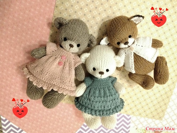 Ну вот, теперь вся компания в сборе, еще не хватает зайчика. Он будет ждать, потихоньку, но верно наступают рассадные дела. Для нового мишки попробовала пряжу фирмы дропс лима, очень понравилась, мягкая и приятная. В 50г 100м, спицы 3, набивка шерсть.