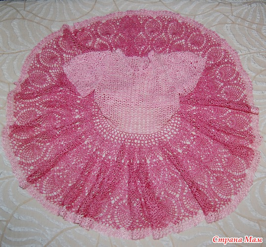 Вот такую красоту связала нам бабушка (моя мама) к прошлому лету, надеюсь в этом году еще тоже поносим без переделки. Платье из вискозы - на жару самое то.