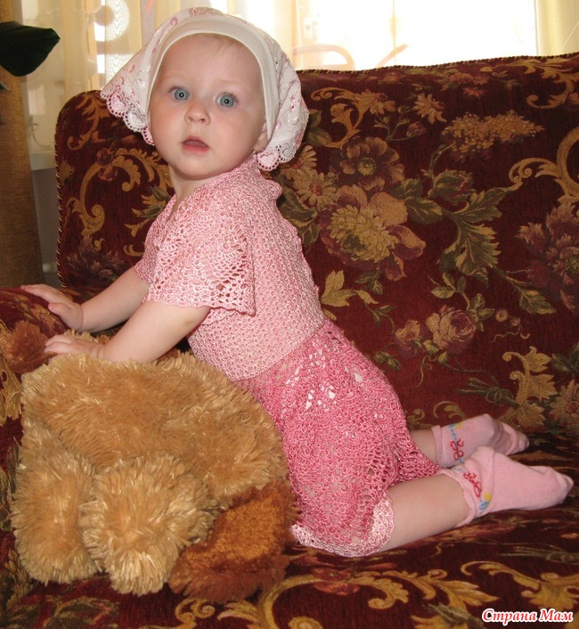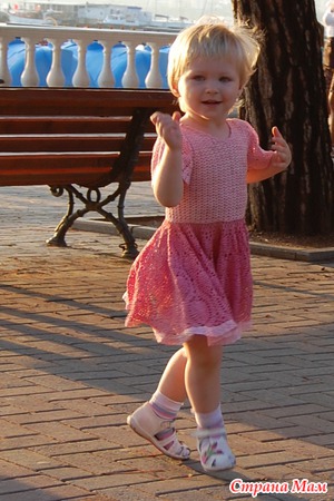 Вот такую красоту связала нам бабушка (моя мама) к прошлому лету, надеюсь в этом году еще тоже поносим без переделки. Платье из вискозы - на жару самое то.