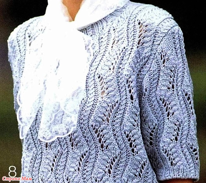 Перед: вязать, как спинку, но с более глубоким вырезом горловины.