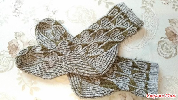 Носки связаны из пряжи нако твид (серый) и шерсть из СССР (зелёный), 260м/100г, спицы 2, и 2,5 для паголенка, связаны от мыска, с анатомической подошвой, резинка 1х1 закрыта иглой эластичным способом. На пару ушло примерно по 80 грамм, т.е. по одному мотку. Читать полностью