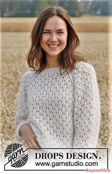 Джемпер вяжется в две нити пряжей DROPS Kid-Silk и BabyAlpaca Silk сверху вниз регланом и ажурным узором. Размеры S - XXXL.
