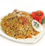 Основа для ленивого плова с курицей или мясом: мясо, лук и морковь обжарить, добавить стакан риса, соль, специи, залить двумя стаканами холодной воды. На большом огне довести до кипения, потом накрыть крышкой и тушить на медленном огне 25-30 минут. Крышку не открываем и не подсматриваем.