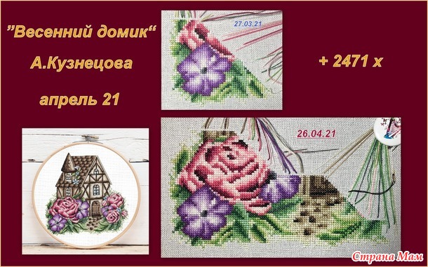 Далее была призовая норма крестиков, которую я использовала для продвижения своего сезонного процесса "Весенний домик" от Анны Кузнецовой. Этот процесс покажу ниже.