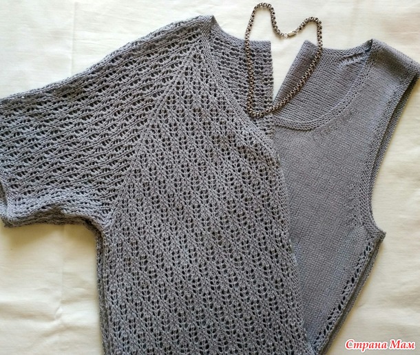Хочу показать свою летнюю «двойку», состоящую из топа и ажурного жакета с короткими рукавами. Долго искала подходящий ажур для жакета, остановилась на незамысловатом узоре, и в деле он мне очень даже понравился.