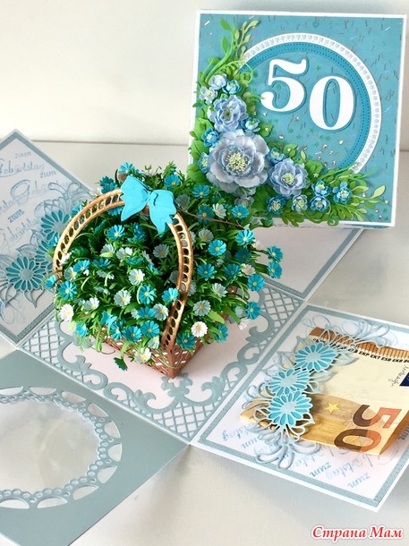 Сегодня я пришла показать вам корзинку цветов в упаковке и как можно красиво подарить денежный подарок на юбилей.