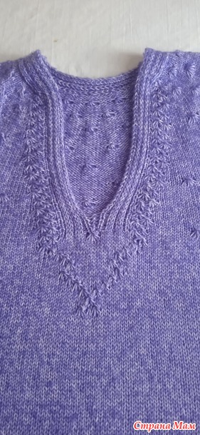 Здравствуйте рукодельницы. Давно хотела связать летний пул с круглой кокеткой вырезом мысик. Да ещё чтоб сверху вниз вязать.Искала долго......и....нашла . Чтоб и посадка и рассчет готовый! В общем нашла. Вязание полостью безшовное,кокетка связана паучками и в них спрятаны необходимые прибавки,обвязка выреза тоже заложена сразу .