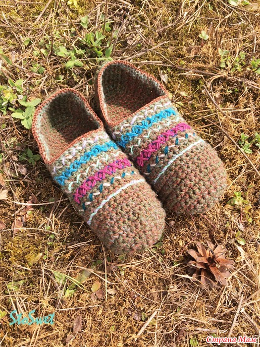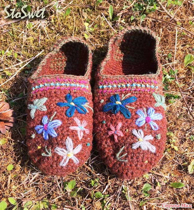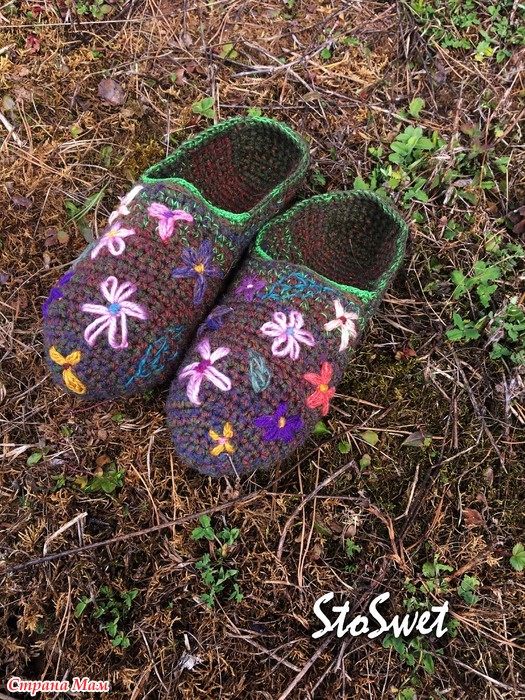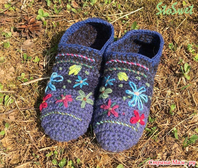 За основу взят видео-урок от "Планета вязания" вязание тапочек крючком от 1.02 2018.