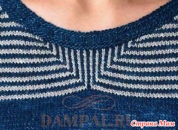 Продолжая менять цвет нити через каждые 2 ряда, выполнять формирование выреза горловины: