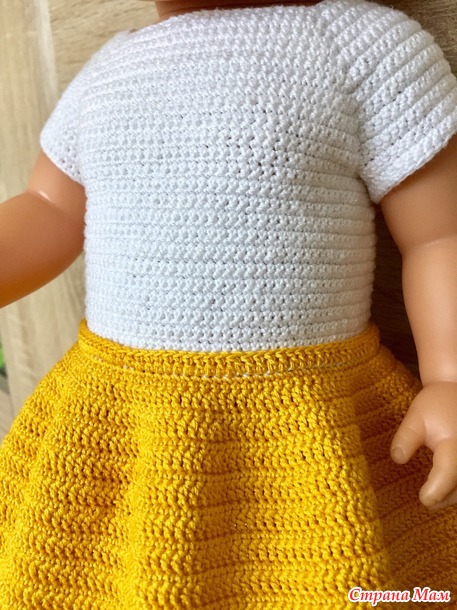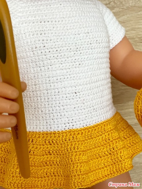 После футболочки сразу вяжу юбочку, снимается всё вместе, (чтобы ничего не терялось).