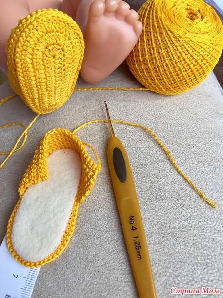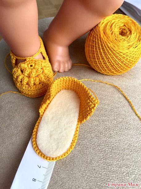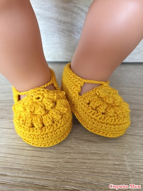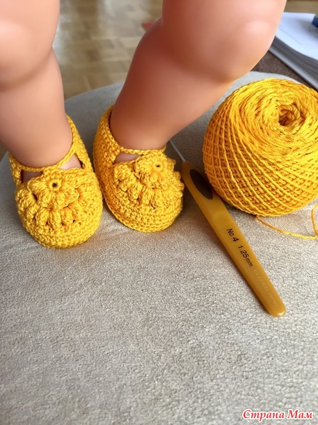 Схему туфелек взяла у Китайских мастериц, только у них размер на деток... а у куклы размер 6,5 см.