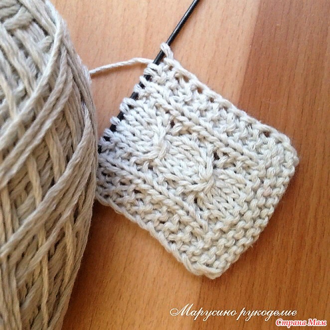 Узор вяжется просто. Обратите внимание - это не жгуты. В лицевом р. вяжутся из 4 петель - 3 петли. А в изнаночном - из накида вывязывается 2 петли и в итоге получается опять 4 петли.