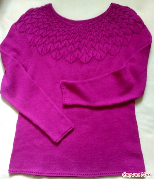 Пуловер с круглой кокеткой. Спицы.