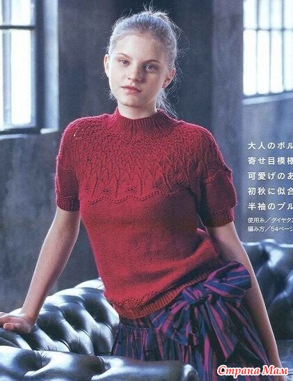 Пуловер с круглой кокеткой. Спицы.