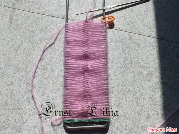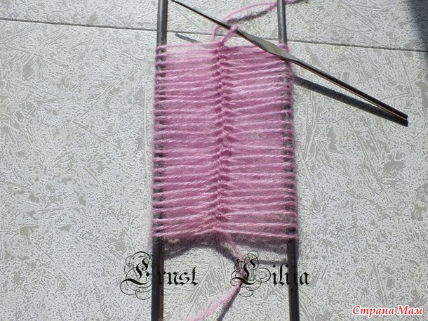 50 оборотов=25 петель на левой спице и 25 петель на правой спице