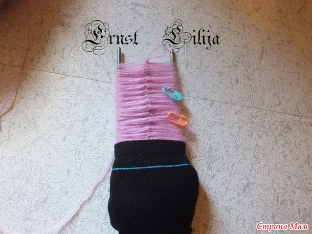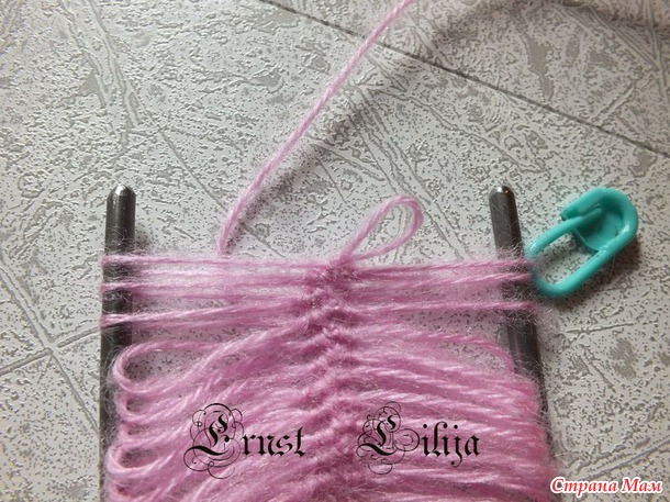 надеваем 3 левые петли на левую спицу, и 3 правые петли на правую спицу,