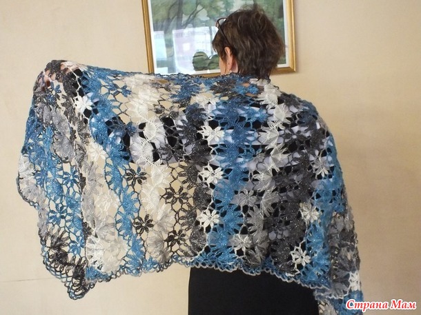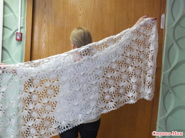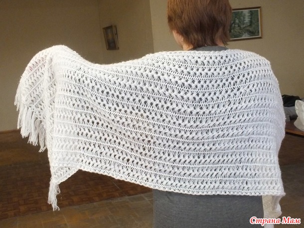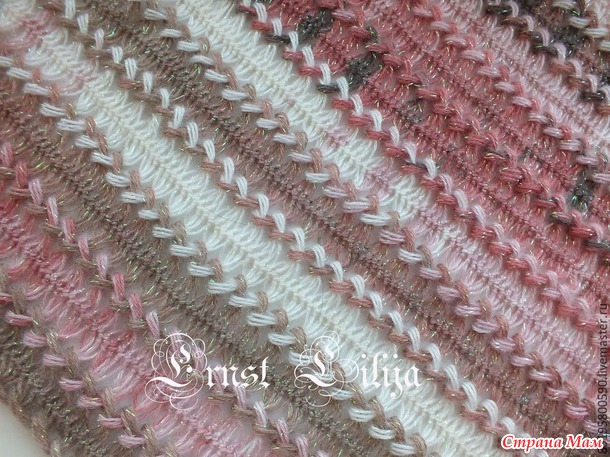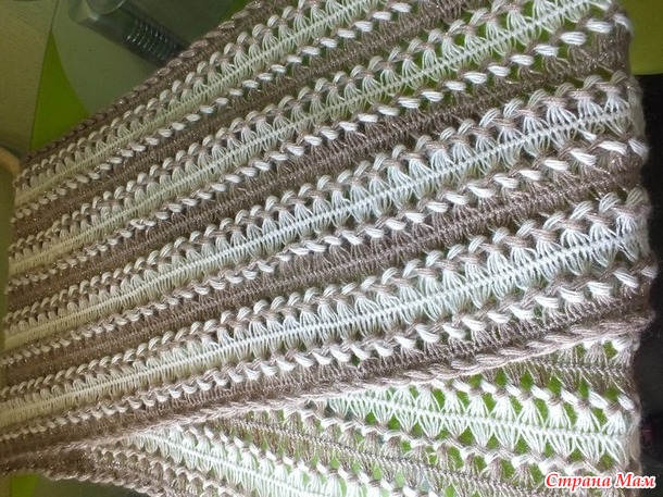 Вяжем аналогичную полосу на 840 петель. Нить отрезать.