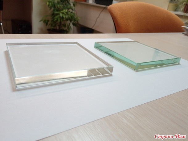 Если вы думаете, что обычное стекло прозрачное, то смею вас разочаровать. Когда нам с мужем показали, как выглядит белый цвет под обычным стеклом и осветлённым, мы сразу увидели разницу.