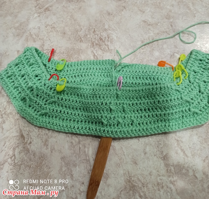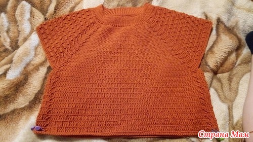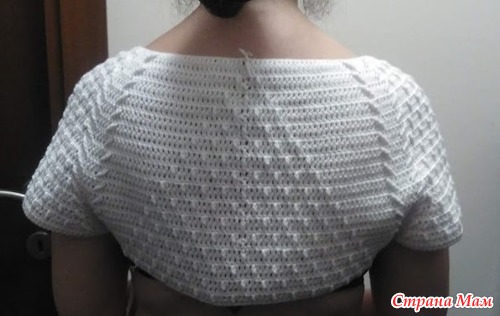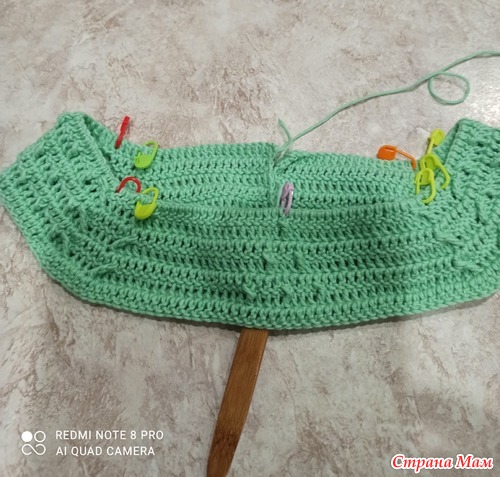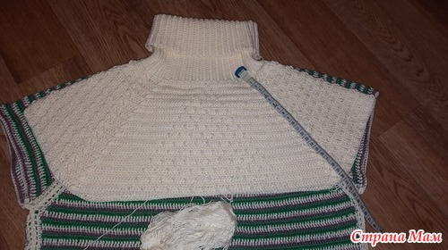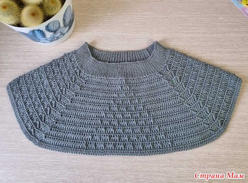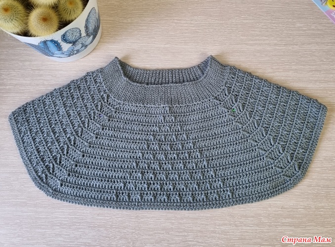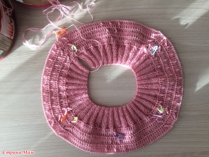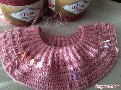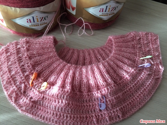 У всех такой прогресс, наконец и я перехожу на след этап. Горловину связала, петли распределила. Буду пробовать туловище.