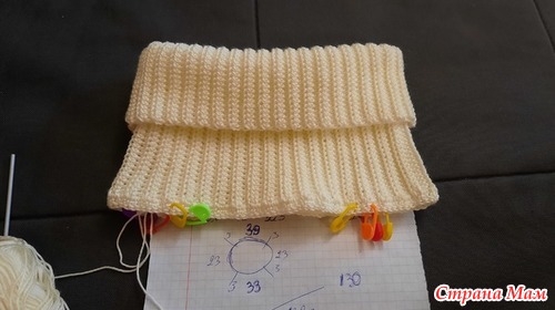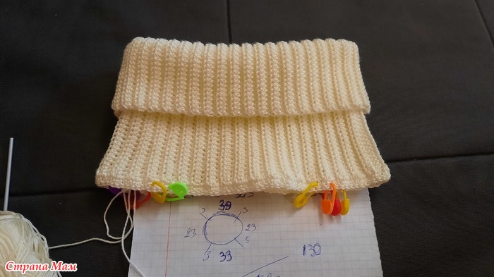 Полученные сантиметры умножаем на горизонтальную плотность, получаем количество петель в наборном ряде. Это количество петель нужно равномерно распределить на связанную резинку