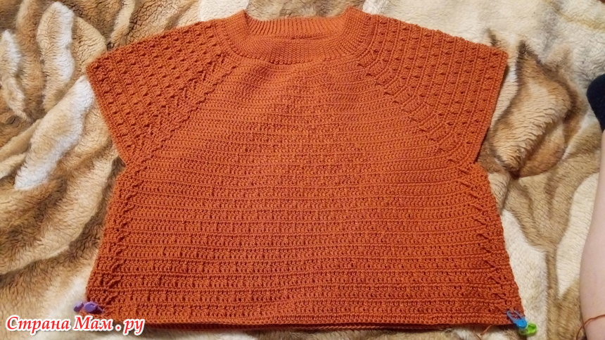 Рукава. Присоединить нить в центре подмышки. Я вязала по схеме так: