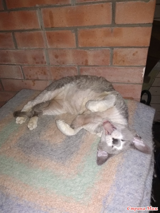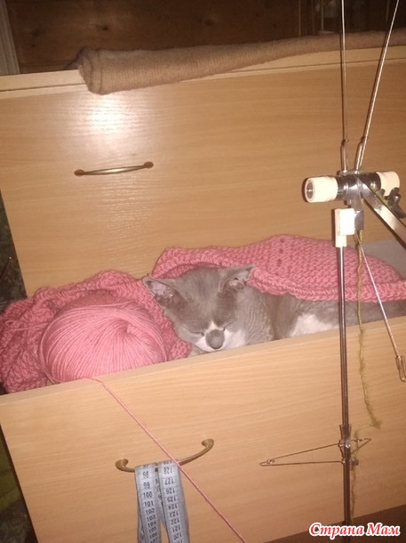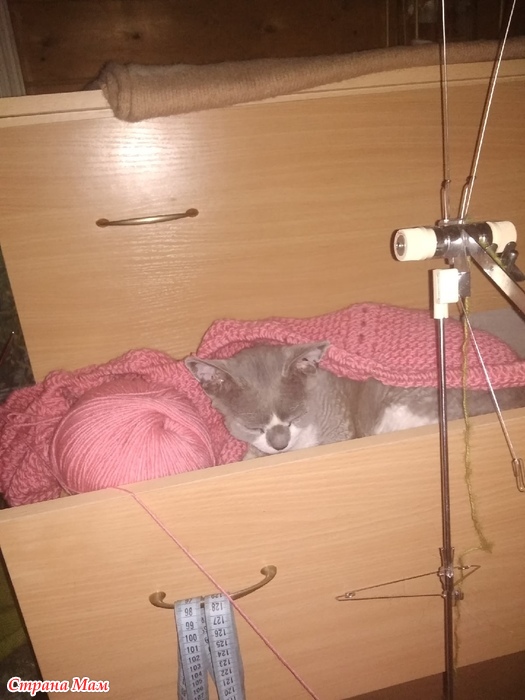 Пока вязала, Френк пристроил недовяз в качестве одеялка. Затяжек кучу понаделал.