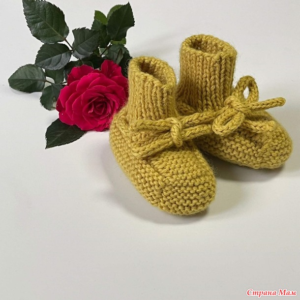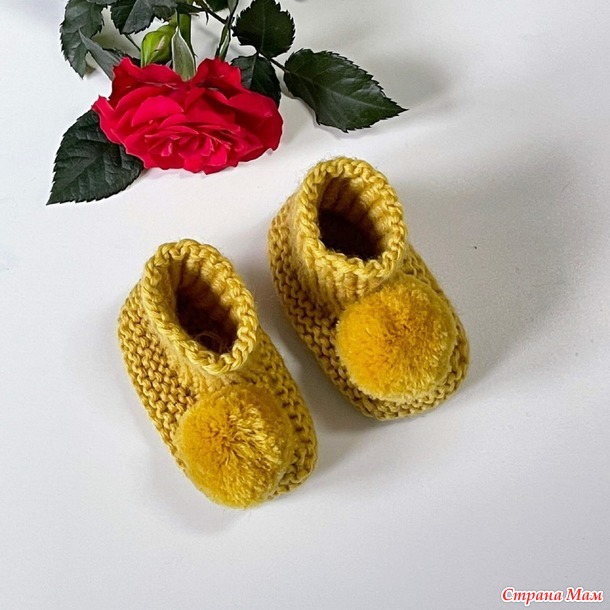 ну а теперь для комплекта свяжем уютные и комфортные пинетки, которые будут согревать его и дарить тепло маминых или бабушкиных рук.