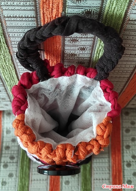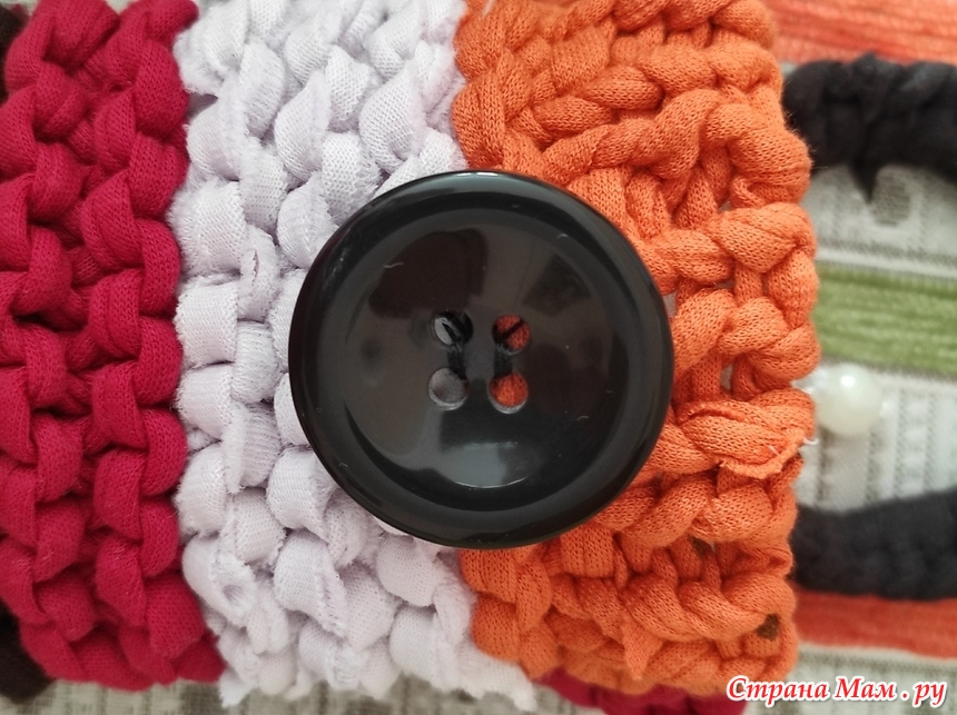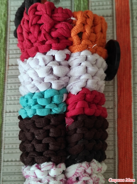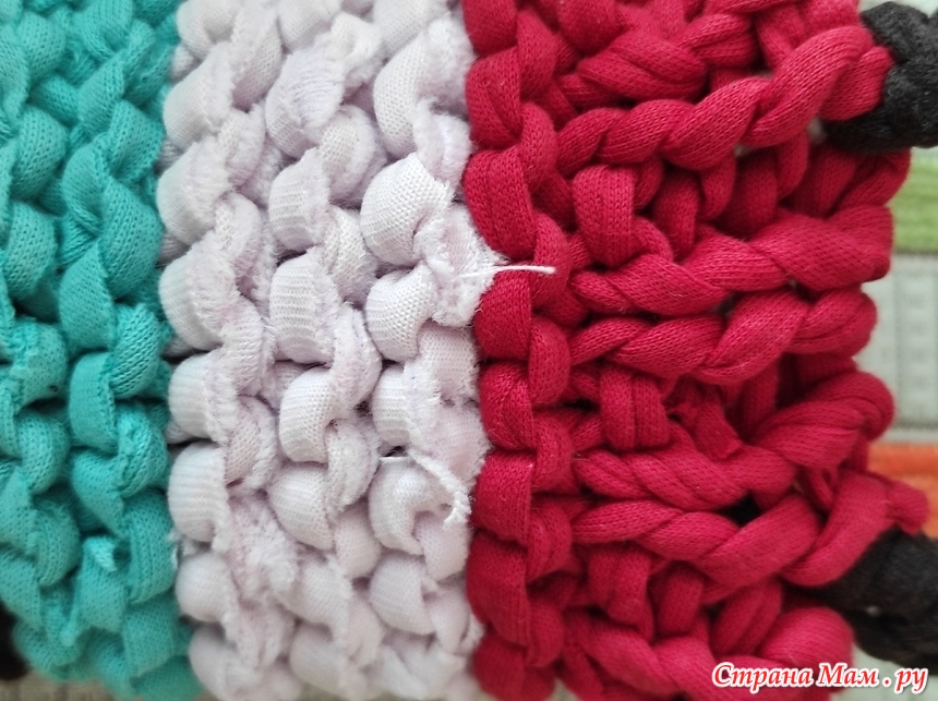 Лучше всего в работе себя ведёт пряжа из х/б трикотажа. Но у меня закончились х/б футболки, закончились старые вещи даже с эластаном. Всё перевязала на коврики. К середине октября осталось несколько совсем маленьких клубочков не лучшего качества.