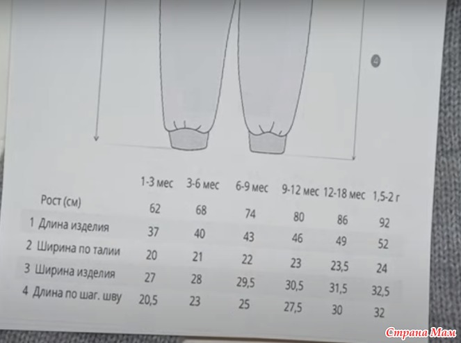 Я взяла за основу размер 74. Ориентировалась на высоту от верха до ластовицы по переду (с резинкой, ширина которой 3 см) 22 см, по спинке - 24 см, длину штанов по боковому шву - 45 см, по внутреннему шву - 24 см. Решила делать штанишки высокими, т.к. где-то прочитала, что нежелательно младенцам делать пояс на животике, чтобы на животик не давило .