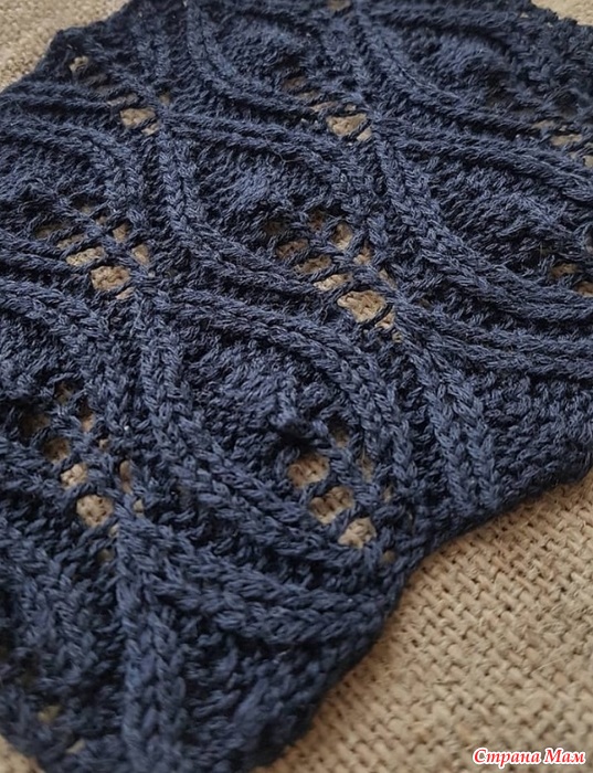 у вас не много другой узор: между листиками накиды, а там по схеме просте скрещенные лицевые. Но тоже очень красиво смотрится