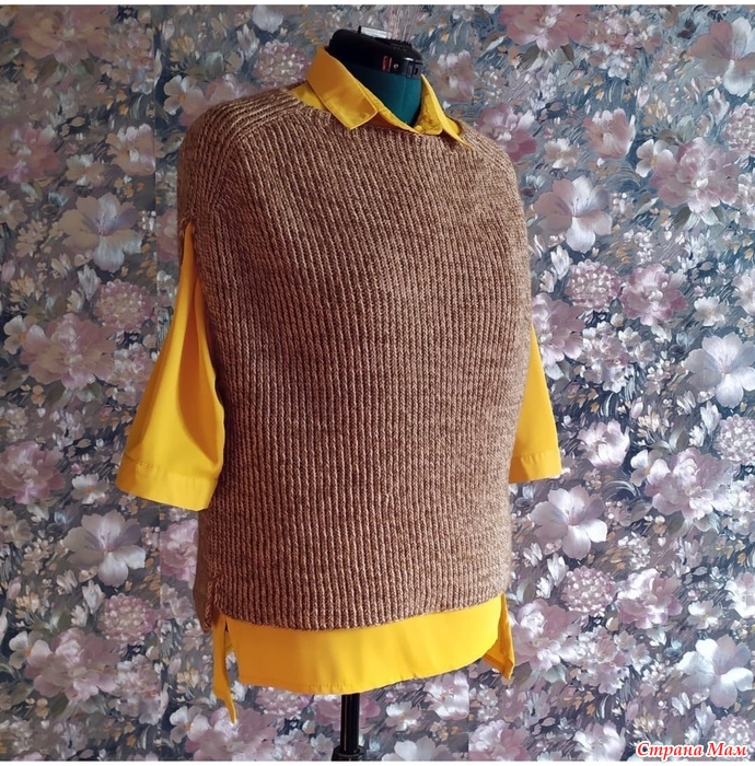 Простая безрукавка в технике реглан-погон. Подробное описание. Спицы. Видео МК.