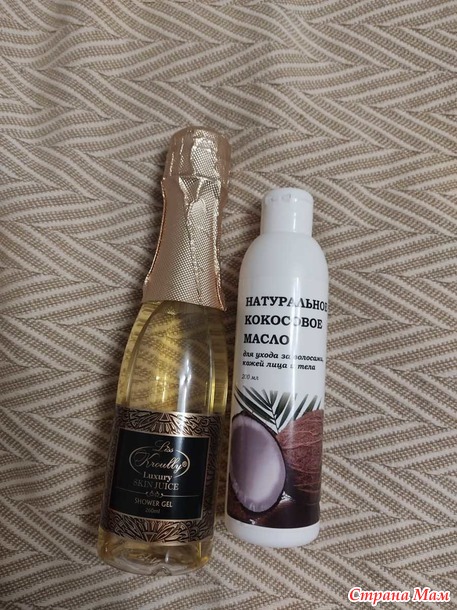 Среди подарков нашла вот такие средства для тела - гель и кокосовое масло. Буквально сегодня думала купить что-то похожее масляное.