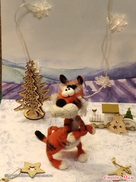 PS. Тигр связан по МК Анны Родной. Использовала пряжу Элитную от Пехорки, 100 меринос, 415 м на 50 гр и Кид мохер от Ализе. Крючок Clover amur 1,5. Игрушка на каркасе.
