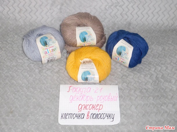 Выбранные мной цвета соответствуют предложенной автором гамме. Но это не потому, что хотелось воспроизвести шаль в точности по описанию, просто у той, кому она предназначена, желтое демисезонное пальто, серая куртка и синий пуховик. Думаю, шаль подойдет ко всей одежде.