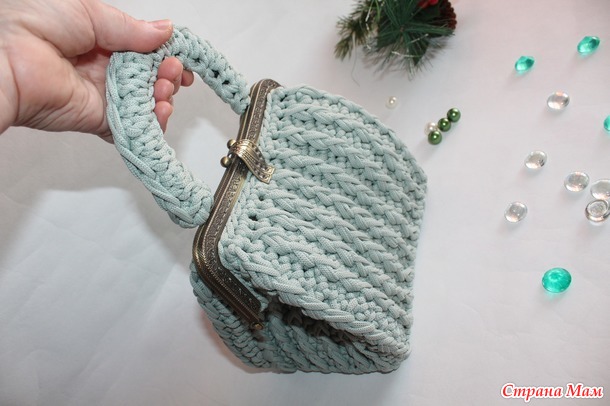 Мне нравится Ваша сумочка, но либо фермуар без обвязки или потоньше обвязать(если возможно).