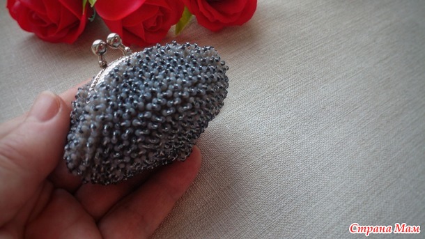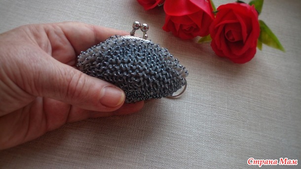 Был у меня бисерный кошелек, удобной прямоугольной формы. Не помещается ничего. Даже кнопочный телефон.