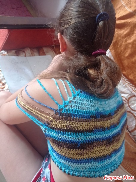 С радостью хочу показать вам оригинальный топ крючком "Верёвочки" как я его назвала. В стране мам я его еще не показывала, только на других ресурсах, где София Елисеева - это я.