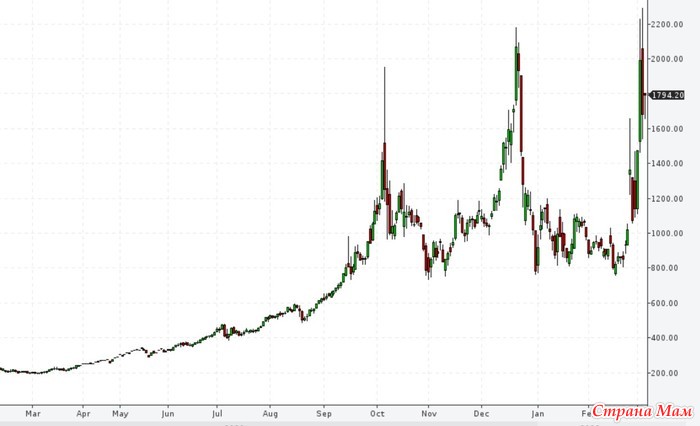 А вот как выглядит у нас биржевая цена на природный газ. Март 2021 года - 200 долларов за 1000 кубов, а вчера была 2225. Подорожание - больше чем в 11 раз за один год. А мне на отопление дома надо 1400-1450 кубов в год, вот и считайте...