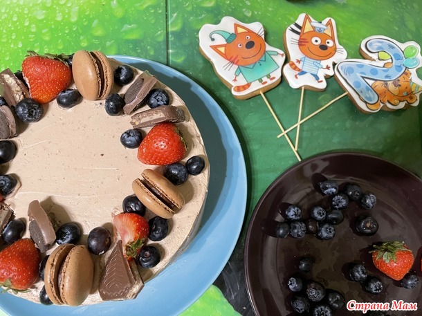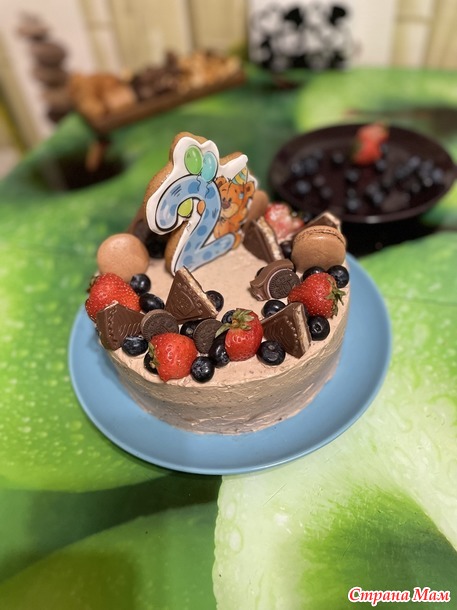 На день рождения младшего поставила цель -праздничный шоколадный торт. Получилось то что видите на фото - ооочень вкусно. Изначально планировался чисто бисквитный торт, но тк печь второй корж мне было совершенно некогда - решила пойти простым путем - добавить прослойку из Савоярди. Торт получился высокий, как надо, и очень нежный! Украсила ягодами, которые идеально дополняют весь этот ансамбль не только визуально, но и на сочетание вкусов. И в принципе, ягод вполне достаточно для украшения, но тк торт все-таки детский и праздничны - я так же использовала готовые пряники нужной тематики и немного вкусных сладостей.