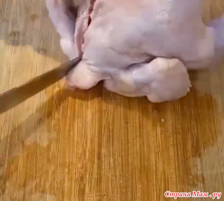 Теперь переворачиваем тушку обратно и кулаком ударяем по грудинке.