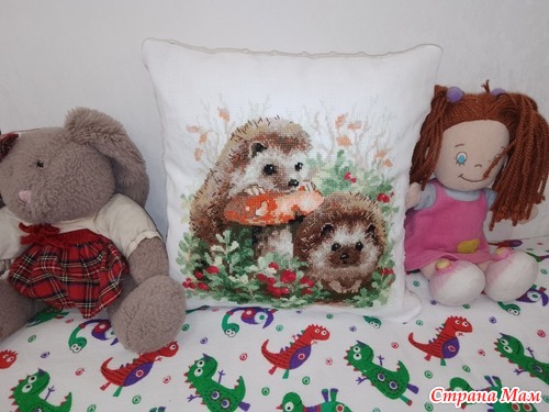 Сшила подушку,для обратной стороны выбрала плюш больше не хочу с ним работать хотя обратка такая мягонькая,нежная,но пока шила плювалась в разные стороны